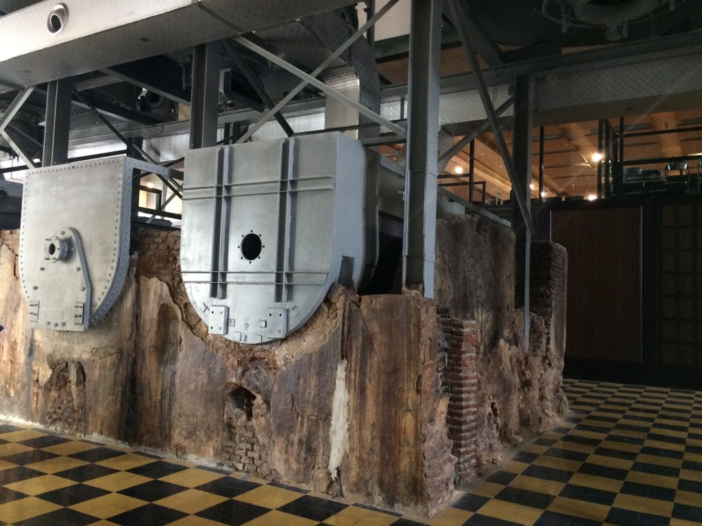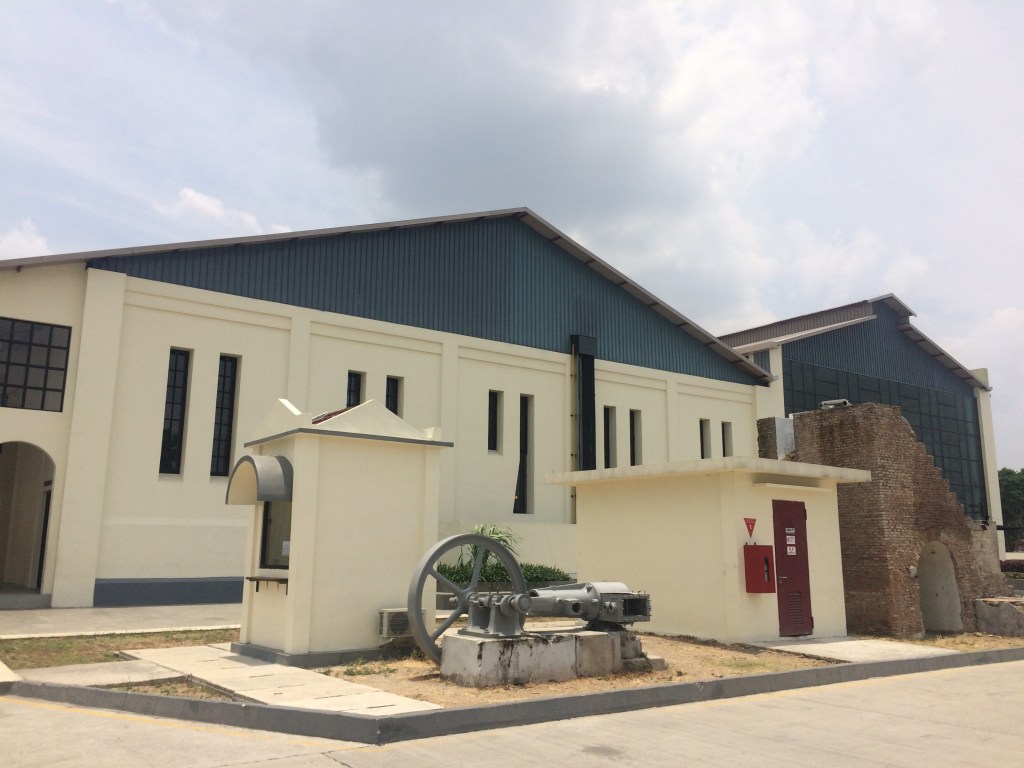 Beranjak ke pintu ke luar sisi lainnya. Bangunan pabrik tampak berdiri megah, dengan cerobong tinggi yang masih asli. Pada fasadnya tertulis “Anno 1928”, tahun di mana pabrik ini direnovasi dan diperbesar. Teras-teras dengan pilar-pilar melengkung tampak artistik disertai dengan bangku-bangku panjang untuk duduk-duduk santai.