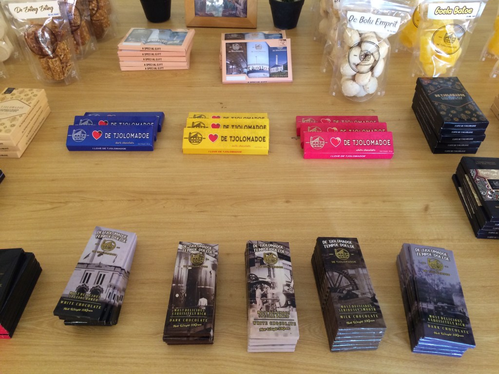 Mampirlah ke toko souvenir sebelum pulang untuk membeli merchandise berupa kaos, topi dan tote bag dengan desain De Tjolomadoe yang ikonik, Juga ada coklat lokal serta kudapan tradisional untuk dibawa pulang sebagai oleh-oleh.